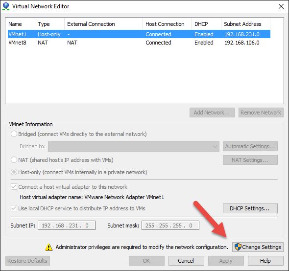 - In VMware workstation, select Edit -> Virtual Network Editor
